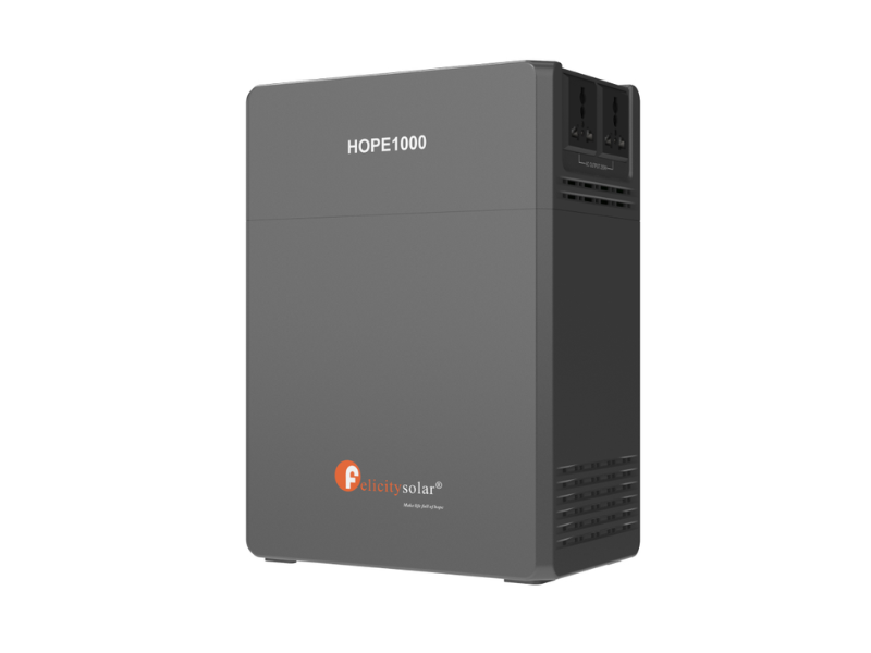 The Felicity Solar HOPE1000 is a compact 1kWh portable power station designed for everyday backup power, light home use, office electronics, small shop loads, camping, and emergency power needs. It combines a built-in inverter, LiFePO₄ battery, and MPPT solar charge controller in one portable unit, making it easy to charge from either grid power or compatible solar panels. Felicity lists the unit with a 1kWh battery capacity, 250W rated power, 12–36V PV input, and up to 200W maximum PV input.